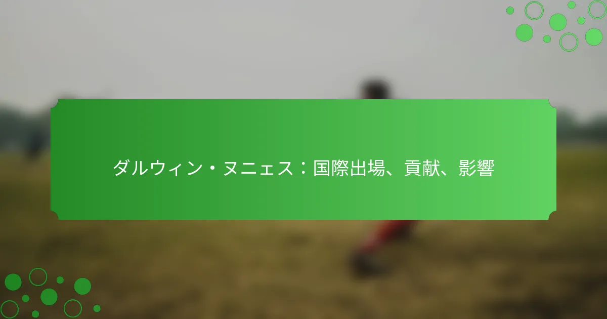 ダルウィン・ヌニェスはウルグアイ代表チームにとって重要な選手として浮上しており、彼の印象的な得点能力と戦術的影響力を通じて大きな貢献をしています。彼の国際試合での出場は、彼のスキルを示すだけでなく、チームの戦略やダイナミクスを形成する上でも重要な役割を果たしており、現代サッカーにおける重要な存在としての地位を確立しています。